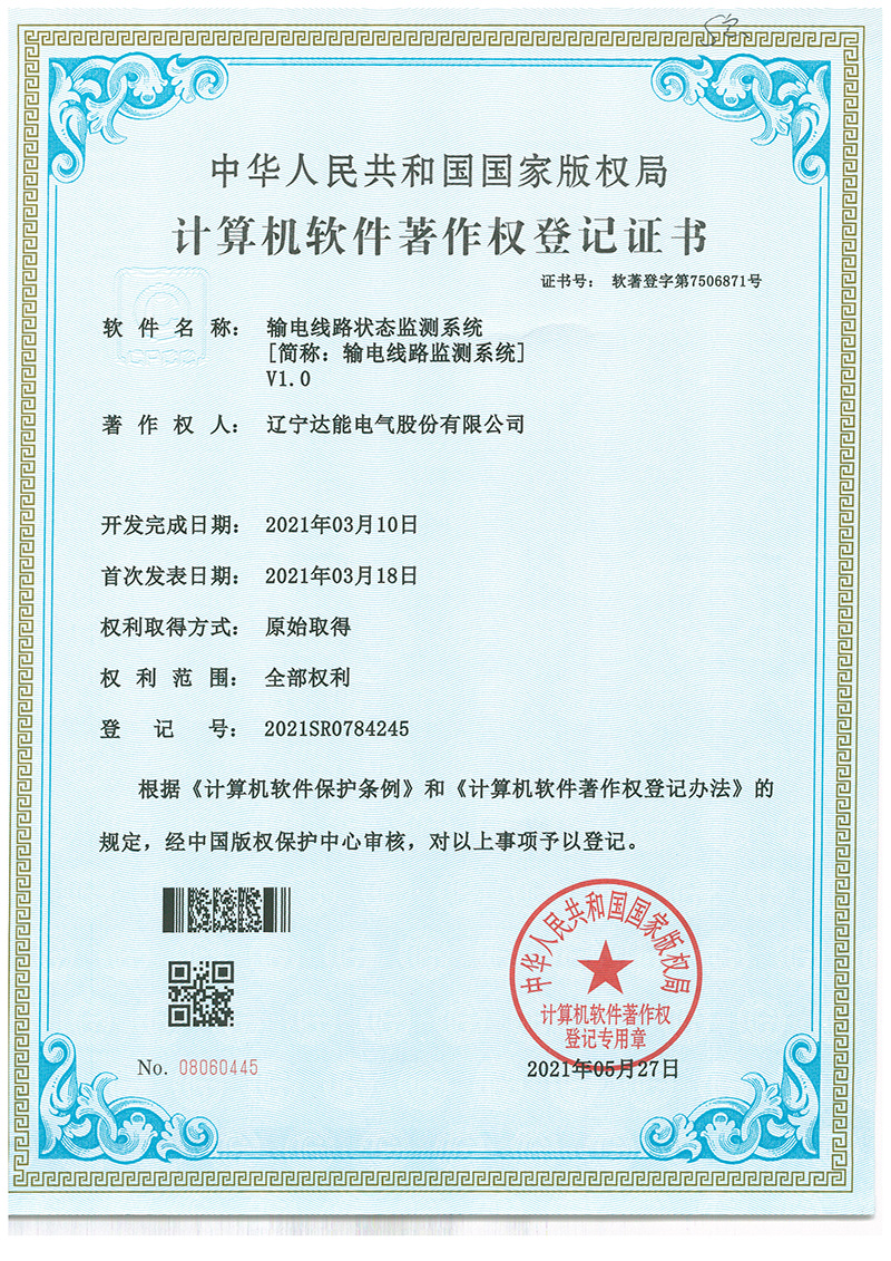 近日,QM球盟会电气集团荣获由国家版权局颁发的《输电线路状态监测系统》软件著作权,这是公司不断践行科技发展战略及知识产权战略的有力成果。《输电线路状态监测系统》(简称输电线路监测系统V1.0)是公司科研团队围绕公司核心业务研发升级的最新系统,紧跟行业前沿科技,提升在线监测水平,推进输电新路安全升级,助力公司不断建立核心产品优势。