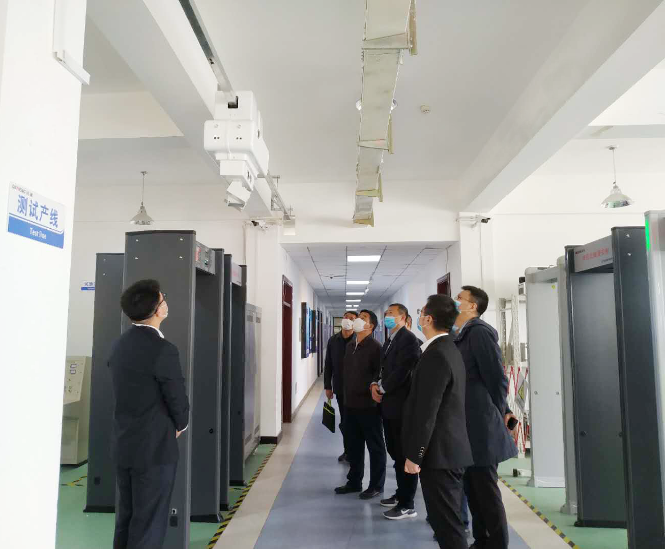 QM球盟会电气董事长首先向郭局长一行介绍了研究院专为疫情防控研发的门式测温仪、基于隧道安全巡检监测而开发的智能机器人。详细介绍了研究院自成立以来,在市科技局的帮助支持下,研究院作为集研究开发、成果转化和技术服务为一体的新型研发机构,结合智能、安全的市场需求,研发出的项目成果。