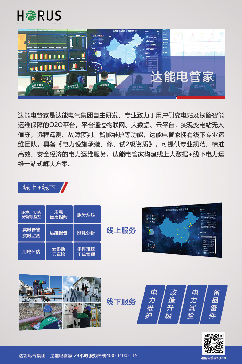 【QM球盟会电管家】是由QM球盟会电气推出的一站式变电站智慧电力运维服务云平台,以电力托管服务模式、互联网 + 智慧电网为技术支撑,专注于服务广大用电企事业单位的变电站运行监测、日常维护、事故预警、应急救援、节能改造、配件供应等服务,平台提供定期巡检维护保养和预防性试验周期管理,实现变电站高效、专业的运维管理,降低事故发生概率。
